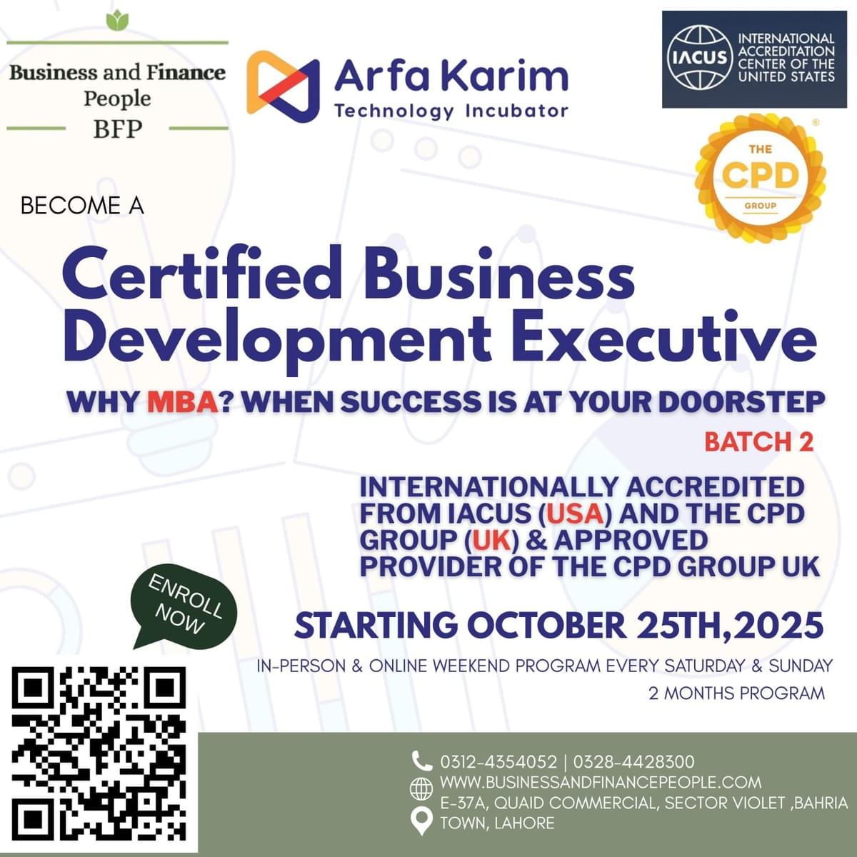 An exclusive JV program designed from the hallmark expertise of Business and Finance People and Arfa Karim Technology Incubator.