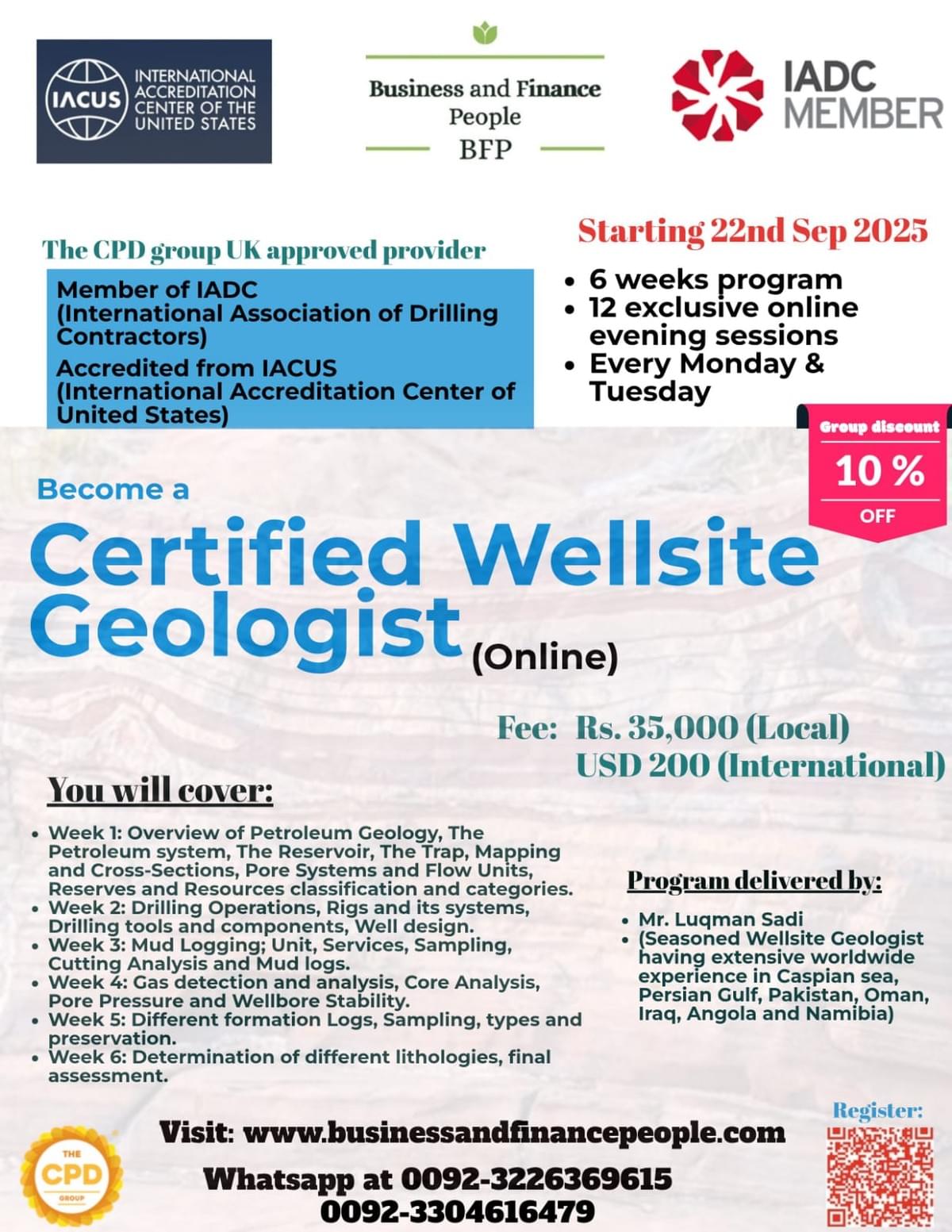 A program designed to cater professional on-field Wellsite experience of Petroleum Geologist and instigate the true knowledge of being a Wellsite Geologist within the participants.